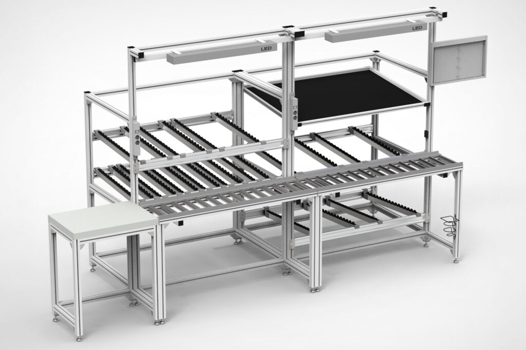 Von ergonomischen, manuellen oder teilautomatisierten Arbeitsplatzsystemen über passgenaue Materialfluss- und Logistiklösungen, bis hin zu kompletten Produktionsausstattungen, wie Schutzeinrichtungen, Regale, Transportwagen uvm.